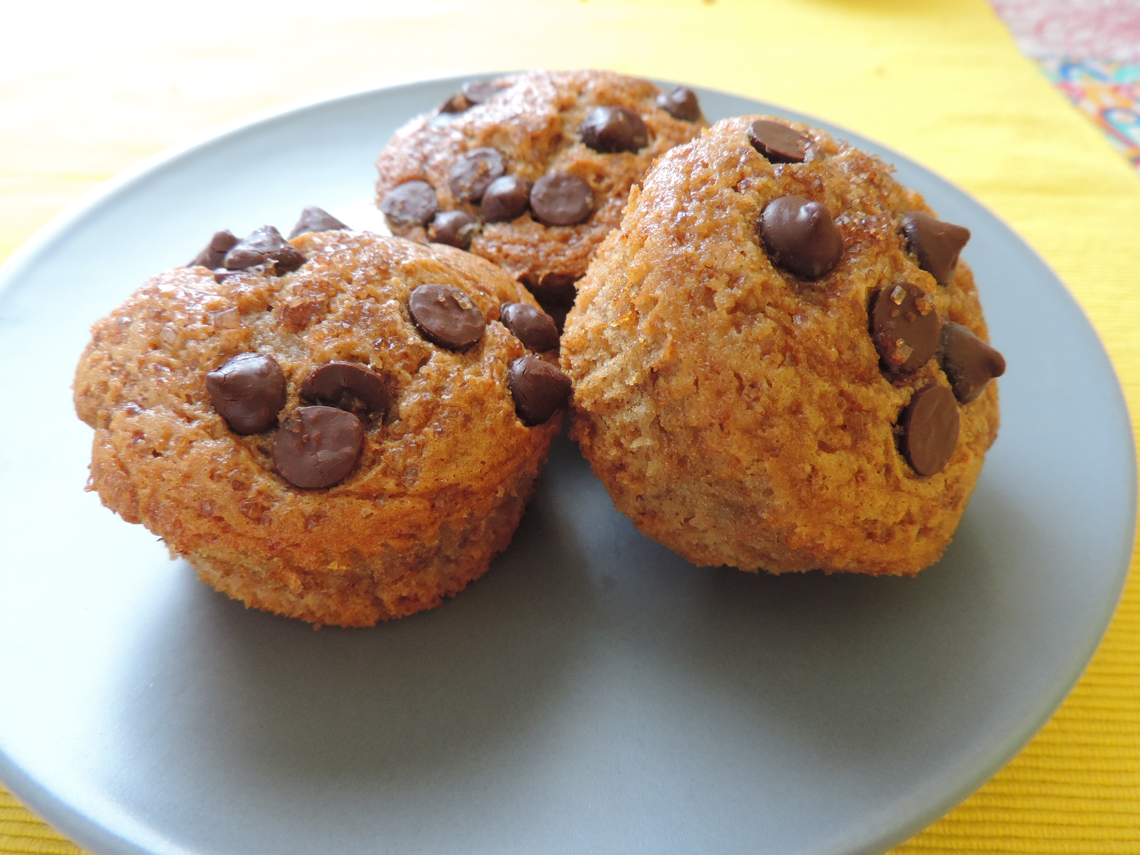 Hoy os traigo unos muffins de plátano y pepitas de chocolate que os encantarán.